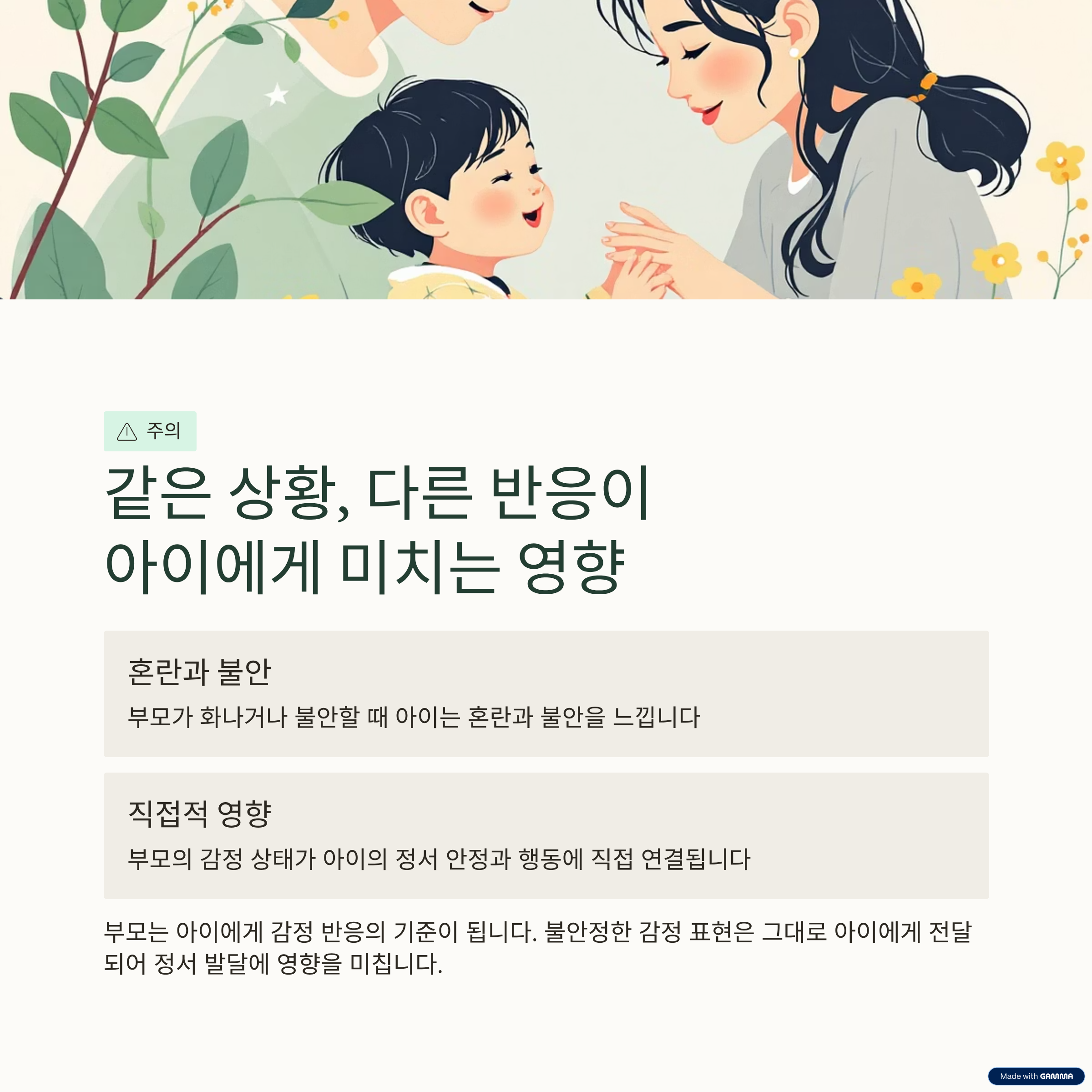 | 부모 정서 안정 | 예측 가능한 반응 | 아이의 감정 학습 |