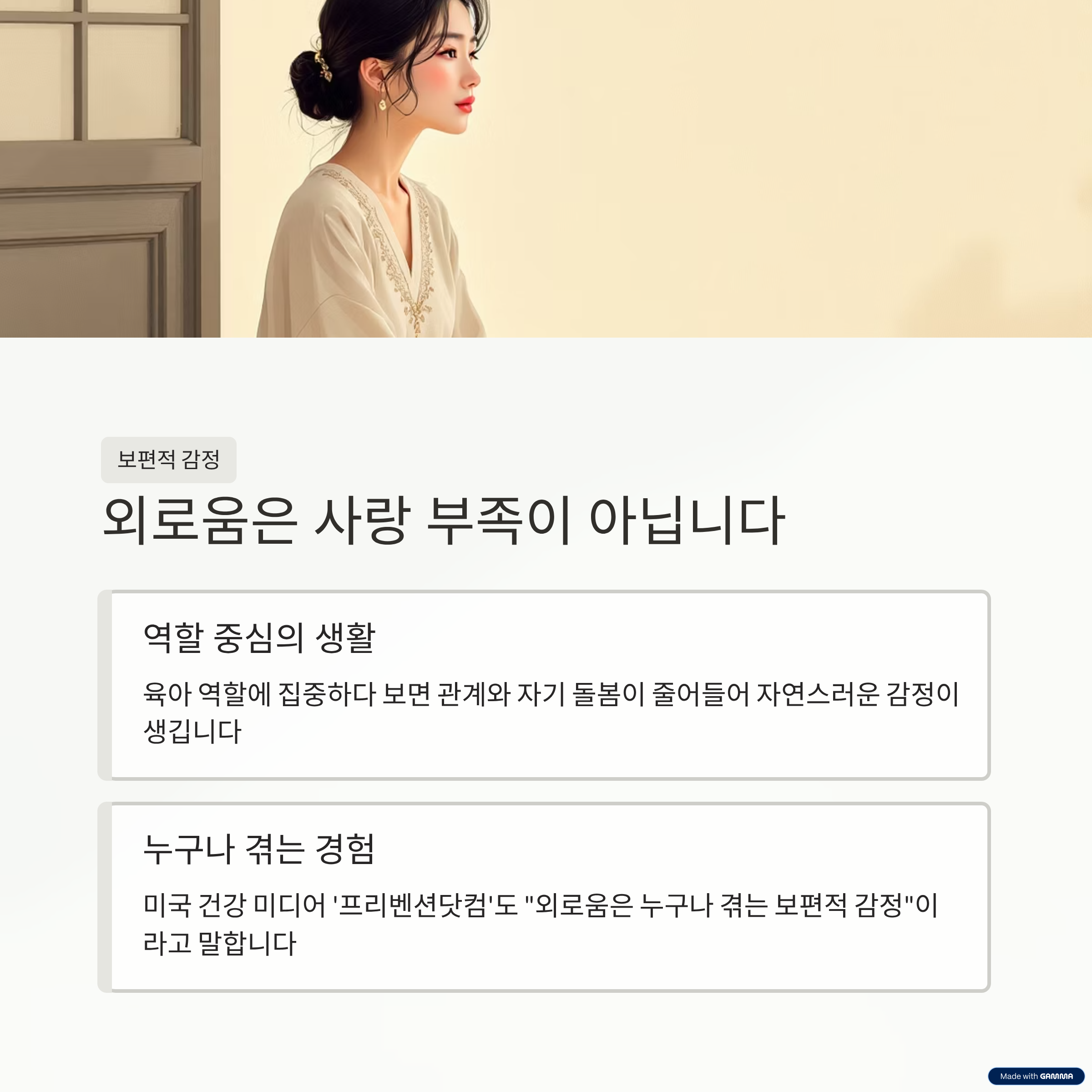 | 육아 외로움 | 역할 중심 생활에서 비롯되는 감정적 고립 |