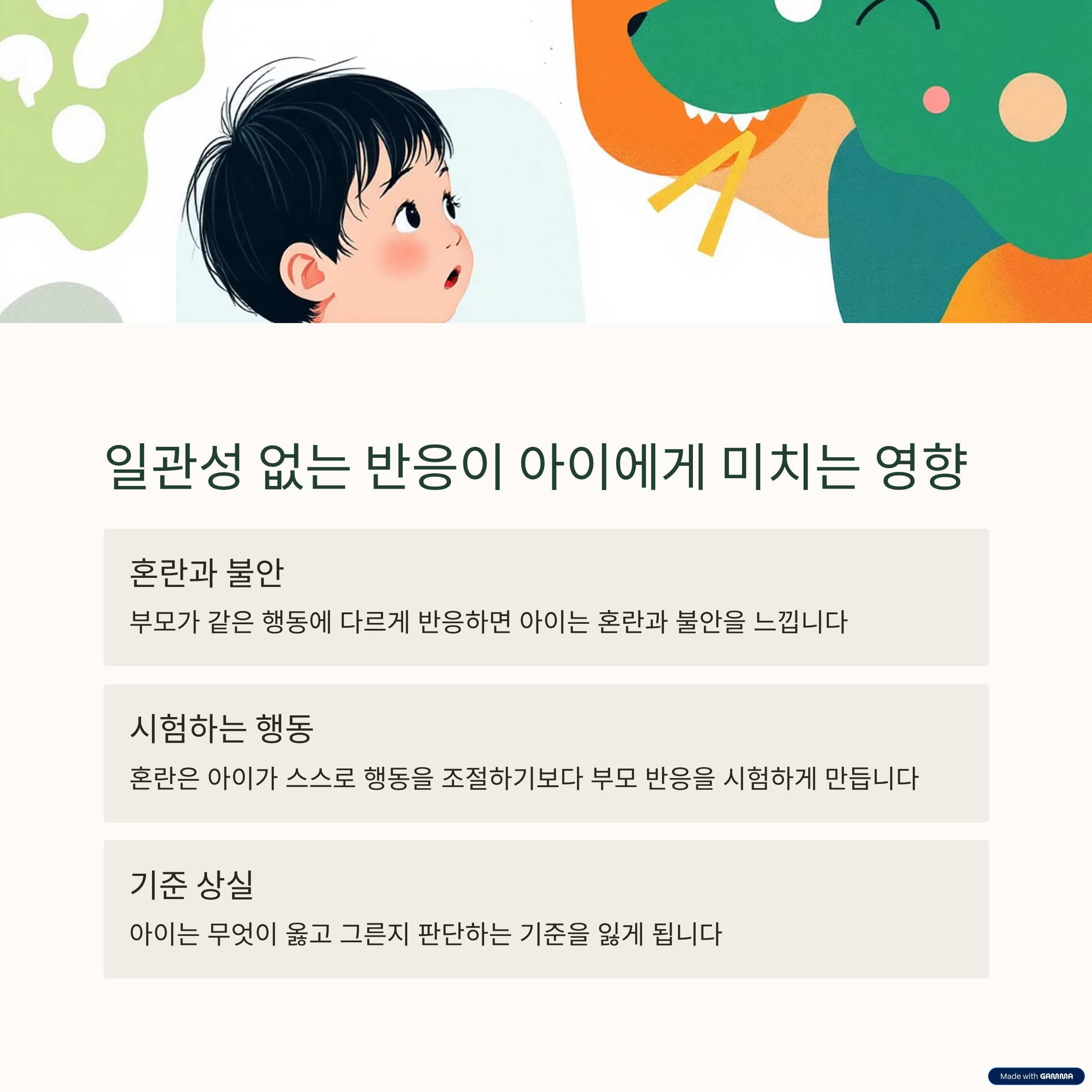 일관성이 부족한 환경에서는 아이가 무엇이 허용되고 무엇이 제한되는지 스스로 판단하기 어렵습니다. 그 결과 행동을 조절하기보다 부모의 반응을 시험하게 되는 상황이 반복되기도 합니다. 이는 아이의 문제라기보다 기준이 흔들린 환경의 영향에 가깝습니다.